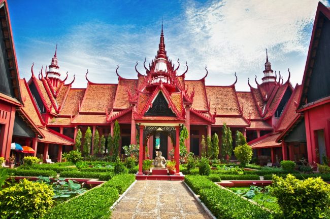 Heute widmen wir uns den historischen und kulturellen Facetten der kambodschanischen Hauptstadt. Zunächst besuchen wir den Königspalast mit seinen prächtigen Gärten und goldenen Pagodendächern. Besonders beeindruckend ist die Silberpagode, deren Fußboden mit mehr als 5.000 Silberplatten ausgelegt ist. Anschließend besichtigen wir das Nationalmuseum, das eine der bedeutendsten Sammlungen klassischer Khmer-Kunst beherbergt, mit Skulpturen, Reliefs und Alltagsobjekten aus verschiedenen Epochen. Am Nachmittag führt unser Weg ins Toul-Sleng-Museum (S21), ein ehemaliges Schulgebäude, das während der Herrschaft der Roten Khmer in ein Gefängnis und Folterzentrum umgewandelt wurde. Die eindringliche Ausstellung vermittelt ein bewegendes Bild dieser dunklen Zeit. Zum Ausklang besuchen wir den Zentral- oder den Russenmarkt, lebendige Orte für einen Einblick in das heutige Alltagsleben der Khmer. Den Tag beschließen wir mit einer entspannten Bootsfahrt bei Sonnenuntergang auf dem Mekong. Phnom Penh zeigt sich noch einmal von seiner ruhigen, eleganten Seite.