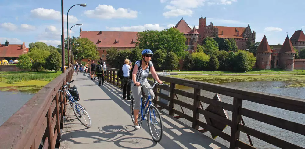 Unsere letzte Rad-Etappe führt uns nach Marienburg/Malbork, wo wir die Burg des Kreuzritterordens, die größte mittelalterliche Festung Europas (UNESCO-Weltkulturerbe), besichtigen. Per Bus erreichen wir am Nachmittag die Ostsee-Metropole Danzig/Gdańsk. (1 Ü/F, M, A)