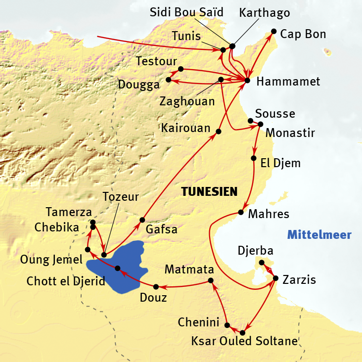 - durchgehende, deutsch spr. Reiseleitung ab/bis Tunis