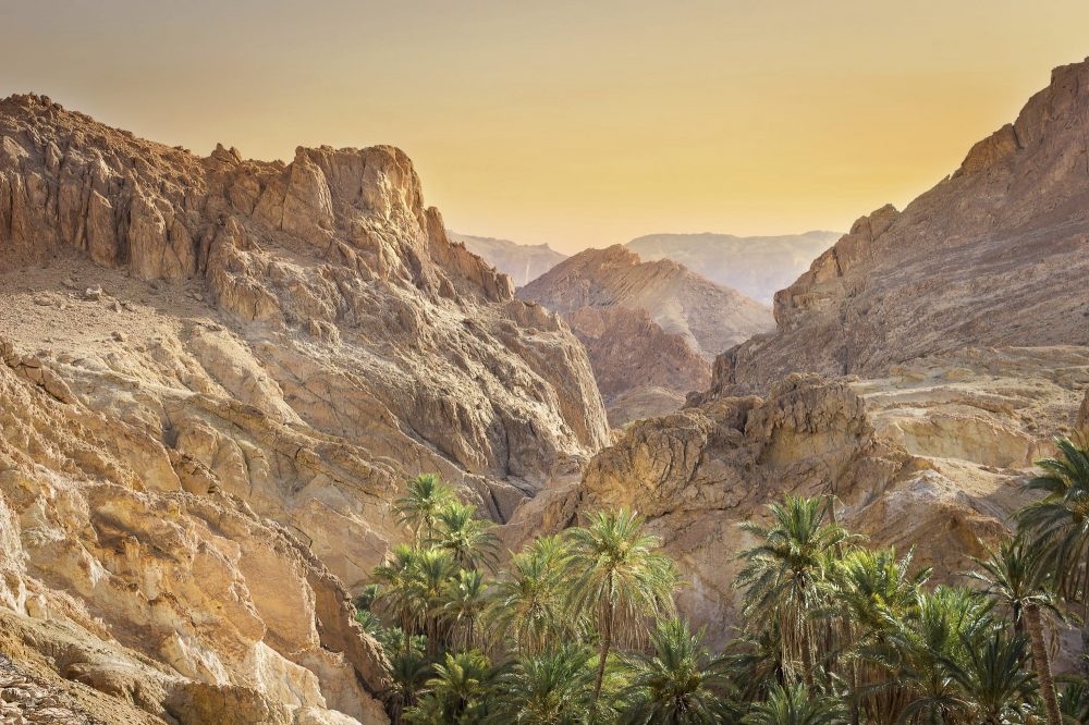 Heute überqueren wir den Salzsee Chott El-Djerid, dem Karl May in "Durch die Wüste" ein literarisches Denkmal gesetzt hat. Weiter zur Oase Tozeur mit mehr als 400.000 Dattelpalmen und einem jahrhundertealten Bewässerungssystem. Bummel durch die hübsche Altstadt (UNESCO-Weltkulturerbe) mit dem Grab von Ibn Chabbat und fakultative Besichtigung der Palmengärten der Oase per Pferdekutsche (v. O. zu zahlen). Nachmittags fahren wir im Geländewagen zum Kamelfelsen Ong Jemel und genießen die schöne Aussicht. Nahebei die Star Wars-Filmkulissen. Anschließend weiter durch die herrliche Bergwelt der zerklüfteten Ausläufer des Atlas-Gebirges zu den Bergoasen Chebika und Tamerza mit ihren Oasengärten, Dattelpalmen, Wasserfällen, Lehmhäusern und Schluchten, die wir während einer Wanderung entdecken. (ca. 310 km)