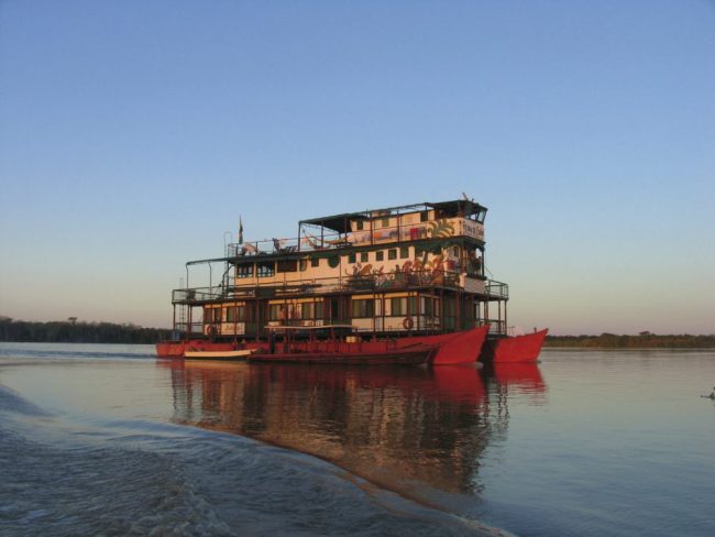 Vorm. Flug nach Trinidad im bolivianischen Amazonas-Tiefland. Von dort aus Fahrt zum Río Mamoré, dem größten Amazonas-Nebenfluss auf bolivianischem Territorium, und weiter mit dem Motorboot zum Naturschutzgebiet Ibare-Mamoré. Dort Einschiffung auf unserem Flussschiff "Reina de Enin". Beginn der dreitägigen Expeditionskreuzfahrt durch dichten Dschungel, vorbei an Flussmündungen, sandigen Uferbänken, indigenen Gemeinden und rosafarbenen Flussdelfinen. Zwei Übernachtungen auf dem Schiff.
