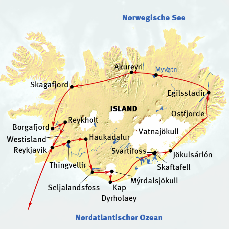 - Auf einen Blick Achttägige Rundreise auf der klassischen Route entlang Islands Ringstraße mit den sehenswertesten Naturlandschaften in der Region des Sees Myvatn, im Gebiet der Geysire und um Europas größten Gletscher Vatnajökull
