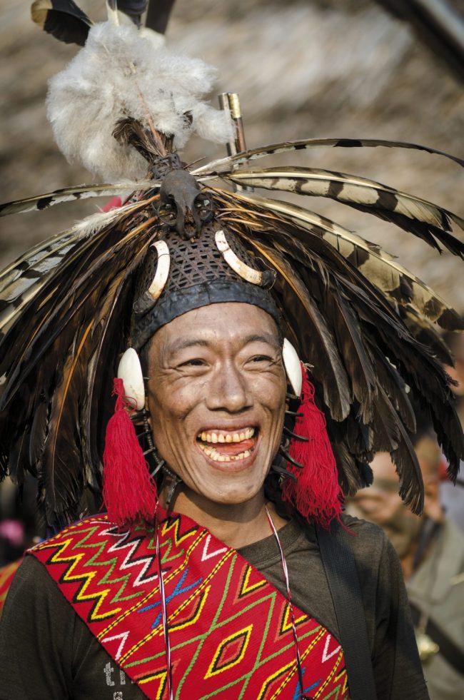 Wir haben den ganzen Tag Zeit, das Hornbill-Festival zu besuchen. Das Festival ist nach dem indischen Hornvogel benannt, einem großen und farbenfrohen Waldvogel, der in der Folklore der meisten Stämme des Staates vorkommt. Das zehntägige Festival vereint alle Menschen in Nagaland und die Menschen erfreuen sich an den farbenfrohen Darbietungen, dem Kunsthandwerk, dem Sport, den Lebensmittelmärkten, den Spielen und Zeremonien. Auch traditionelle Kunstwerke wie Gemälde, Holzschnitzereien und Skulpturen werden ausgestellt. Das Festival stellt die Kultur und Tradition der Stammesvölker vor und unterstreicht die Identität Nagalands als einzigartiger Bundesstaat in der föderalen Union Indiens.