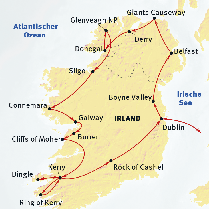 - Auf einen Blick Geführte zehntägige Rundreise zu den landschaftlichen Höhepunkten der „grünen Insel“