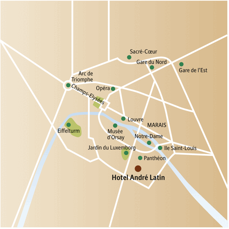 - 6 Übernachtungen mit Frühstück im Hotel André Latin