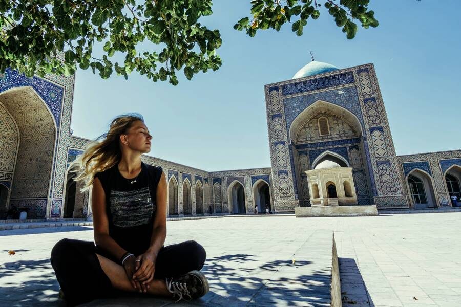 Die Idee dieser Reise: im Privatwagen mit Scout die legendäre Seidenstraße erkunden. Die vorgeschlagene Route unserer Länderexpertin führt Sie u. a. ins Ferganatal, den Obstgarten des Landes, sowie in die orientalischen Märchenstädte Chiwa, Buchara und Samarkand. CHIWA, letzte Oase vor der Wüste Kyzylkum. Frauen backen in mobilen Öfen unter freiem Himmel Brot – seit Jahrhunderten geben die Familien ihre Rezepte von Generation zu Generation weiter. Sie lassen sich von Ihrem einheimischen Fahrer bequem chauffieren, an Sanddünen und Steppe vorbei, bis die MOSCHEEN, MEDRESEN und sandfarbenen KUPPELBASARE von Buchara vor Ihnen auftauchen. Keine Frage: Der imposanteste Platz in ganz Usbekistan ist der REGISTAN IN SAMARKAND. Mein Lieblingsplatz ist jedoch der LABI-HAUZ IN BUCHARA. Ein paar Kinder schütteln die leckeren Beeren aus den knorrigen Maulbeerbäumen, Männer spielen Domino oder trinken Tee.