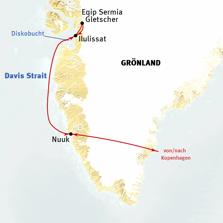 - Linienflüge mit LUFTHANSA ab/bis Frankfurt nach/von Kopenhagen und Flüge mit AIR GREENLAND nach/von Grönland inkl. Steuern und Gebühren