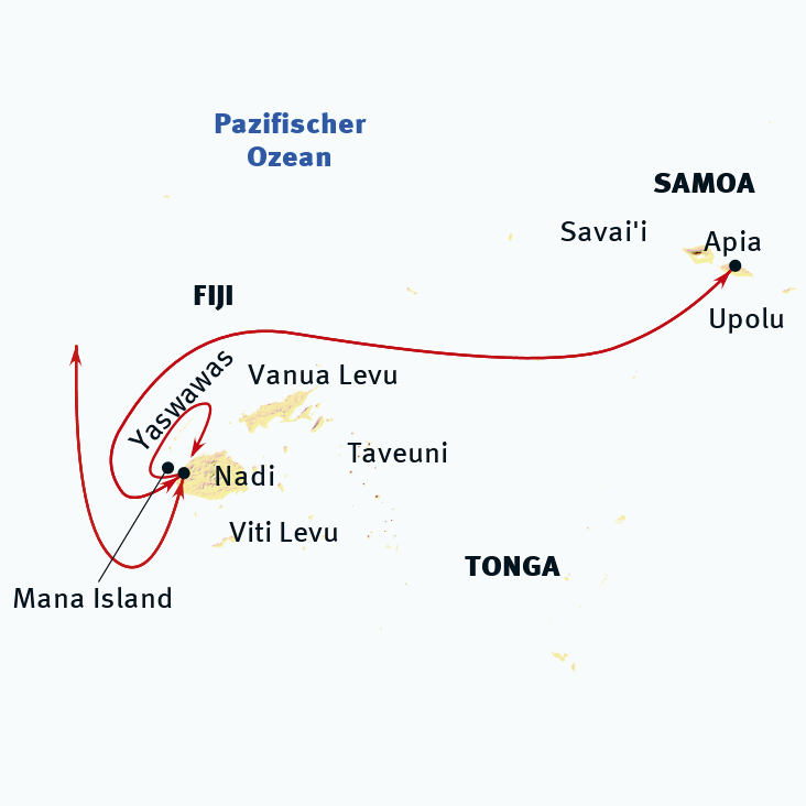 - Auf einen Blick Individualreise zu den ursprünglichen Inselgruppen von Fiji und Samoa