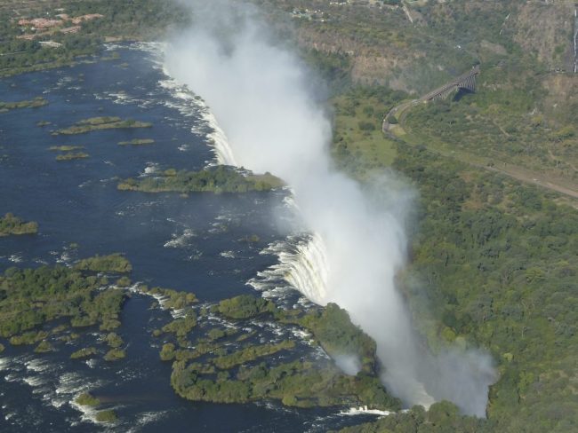Fahrt in die Grenzstadt Kasane, hier wird das Fahrzeug abgestellt (Flughafen o. bei der Unterkunft). Dann Transfer über die Grenze nach Victoria Falls/Zimbabwe. Spätnachmittags in Eigenregie eine Wanderung an den Fällen entlang (Eintrittsgebühren ca. USD 30,- p.P.). Atemberaubend auch der Blick auf die Fälle aus der Vogelperspektive während eines optionalen Hellikopterrundfluges. (Wer etwas mehr Zeit hat, sollte hier unbedingt einen zusätzlichen Tag in Erwägung ziehen.)