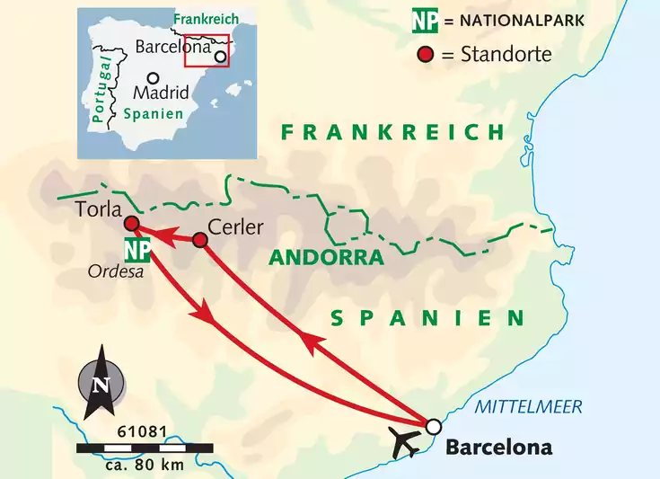 Das zentrale Bergmassiv von Aragón bietet den größten Artenreichtum an Flora und Fauna der gesamten Pyrenäenregion. Über dem Benasque-Tal wacht der Aneto, mit 3.404 m der höchste Gipfel des Gebirges. Der Ordesa-Nationalpark ist der Stolz der aragonesischen Berge mit rauschenden Bächen, Wasserfällen und vielen Greifvögeln. Gemütliche, von Touristen nur wenig frequentierte Dörfer liegen verstreut in dieser imposanten Gebirgswelt. Lass dich von der unberührten Natur verzaubern!