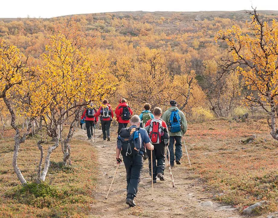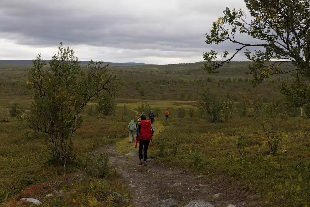 Unsere erste Wanderung führt uns hinauf in die Hügel, die sich im warmen Herbstleuchten färben: Gold, Rot und Orange. Von oben betrachtet schlängelt sich der Teno wie ein silbernes Band durch die Landschaft und ist einer der fischreichsten Flüsse Europas. Wir genießen die Ruhe, vielleicht wagen die Mutigen ein kurzes Bad im klaren Wasser. Am Abend schenkt uns die Sauna das Gefühl finnischer Geborgenheit – und mit etwas Glück tanzt schon das Nordlicht über den Himmel (GZ: 3 Std., +/- 50 m).