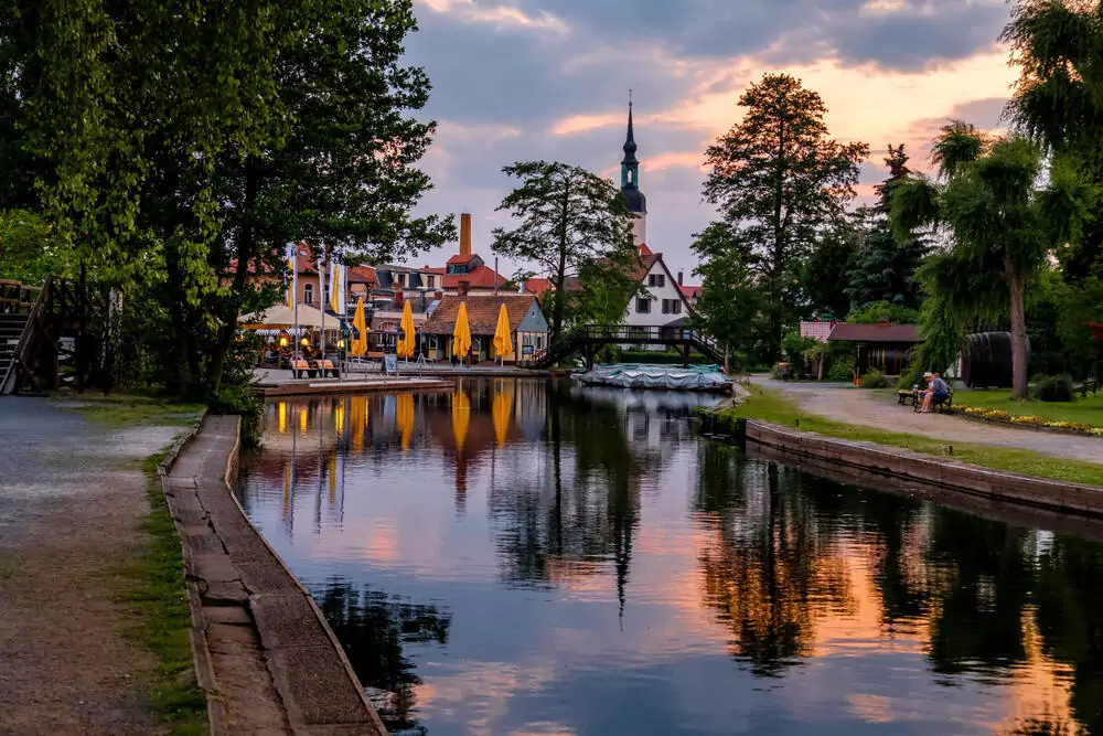 Heute wechseln wir aufs Wasser: In Kanadiern – Kanus, in denen jeweils 3-4 Personen Platz finden – gleiten wir durch stille Fließe, vorbei an urigen Dörfern und Waldstücken und lauschen dem Gesang der Vögel. Immer wieder plätschert es um uns herum, wenn ein tierischer Spreewaldbewohner vor uns abtaucht – vielleicht eine Ente oder eine Nutria? Kleine Schleusen und enge Wasserwege machen die Tour besonders abwechslungsreich. Am Abend erwartet uns ein spannendes Erlebnis: Der Nachtwächter führt uns durch das Inseldorf Lehde und bringt uns die Geschichten des Ortes näher.