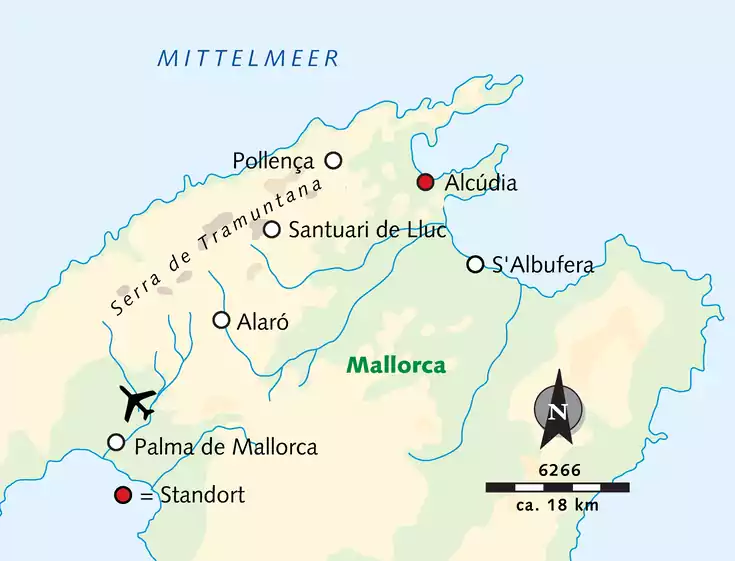 Entdecke mit uns den vielfältigen Norden Mallorcas. Wir erkunden gemeinsam die malerische Bucht von Alcúdia, besuchen das charmante Städtchen Pollença und erleben die Bergwelt der Serra de Tramuntana rund um das Kloster Lluc. Unser Standort Alcúdia begeistert mit der grandiosen Altstadt, dem schönen Wochenmarkt, der Nähe zum erfrischenden Meer und einer gelungenen Mischung aus Geschichte und Moderne. Mach dich bereit für eine abwechslungsreiche Wanderwoche und erlebe Mallorcas Norden!