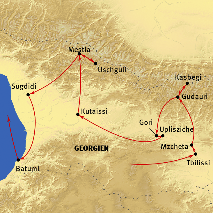 Georgien, das zweitälteste christliche Land, seit 337 Staatsreligion, ist ein faszinierendes Reiseziel. Es beeindruckt mit Bauwerken aus frühchristlicher Zeit und verschiedenen Landschaftsformen auf kleiner Fläche: von Weinregionen im Osten über den Kaukasus bis zur subtropischen Schwarzmeerküste. Swanetien, Heimat der Swanen, liegt in den höchsten Gebirgen des Kaukasus. Unsere Tour startet in Tiflis und führt, bis auf Kachetien, durch alle Landesteile. Vom größten Gletscher, dem Kasbeg, folgen wir der alten Seidenstraße nach Swanetien, überragt vom Schchara (5.068 m). Die Reise endet in Batumi an der Schwarzmeerküste mit optionaler Badeverlängerung. Diese nachhaltig gestaltete Reise kombiniert Naturerlebnisse mit der Entdeckung des traditionellen und neuen Georgiens, ideal für Anfänger und Wiederholer.