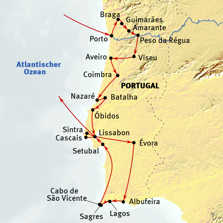 - zu Beginn drei Übernachtungen in Lissabon mit Tagesausflug an die Küste