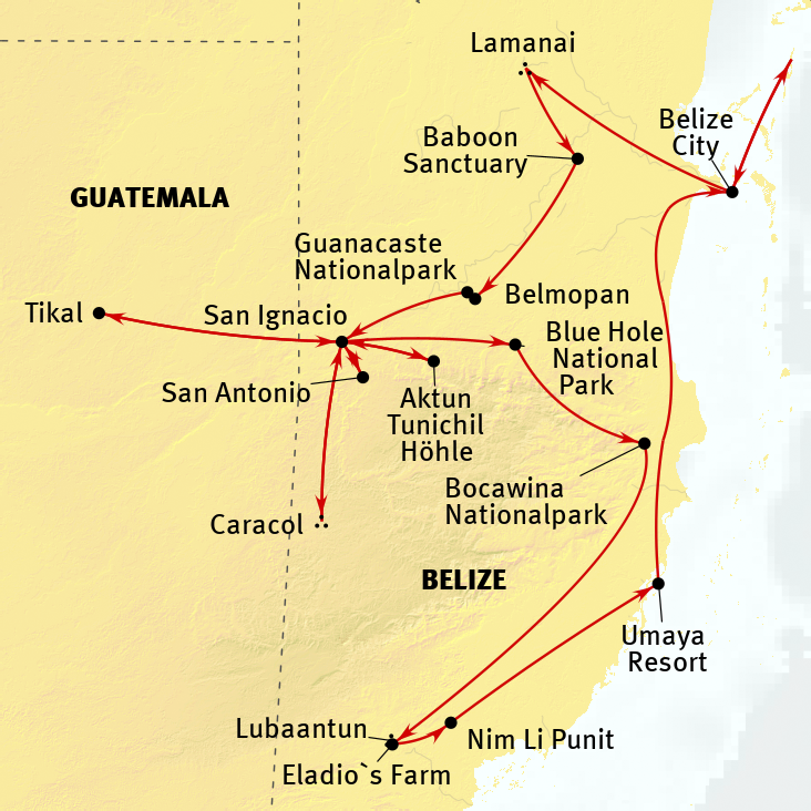 - durchgehende, deutsch spr. Reiseleitung (ausgenommen Strandaufenthalt in Placencia)