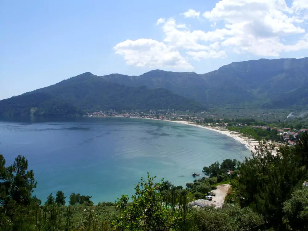 Ausgehend von Limenas führt unsere Wanderroute über das vom thassiotischen Baustil geprägte Gebirgsdorf Panagia. Auf Höhenwegen streben wir der Traumbucht des Golden Beach entgegen. Dort schiffen wir uns ein und fahren entlang des Küstensaums zurück nach Skala Rachoni (GZ: 5 Std., +/- 500 m).