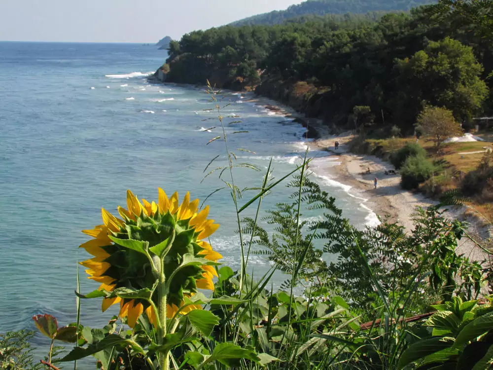 Vom Kloster Panteleimonas aus besteigen wir den knapp 1.000 m hohen Tsetsou Rachis. Das Panorama geht über Skala Rachoni bis hinüber in die Rhodopen. Nachdem wir uns sattgesehen haben, wandern wir hinab ins pittoreske Kazaviti (GZ: 5 Std., + 350 m, - 700 m).