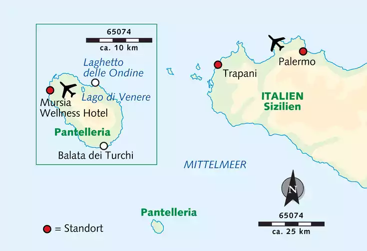 Von Palermo oder Trapani (je nach Reisetermin) fliegen wir heute weiter nach Pantelleria, beziehen unser Hotel für die nächsten 7 Nächte und unternehmen im Anschluss eine kleine Erkundungswanderung mit Besuch bronzezeitlicher Ausgrabungen.