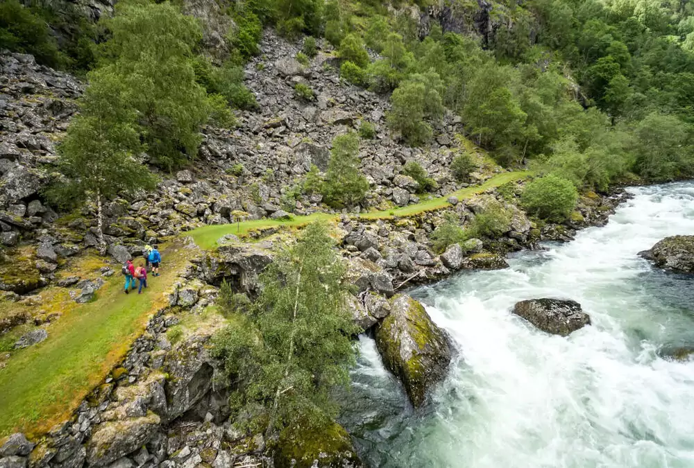Der historische Königsweg, der Kongevegen, führt uns durch pure Natur: weite Hochebenen, einsame Berglandschaften und tiefe Wälder. Der Abschnitt über das Filefjell wurde um 1790 in die steile Landschaft gebaut, wozu oft hohe Mauern aufgeschichtet werden mussten. Wir erwandern die schönsten Abschnitte des Kongevegen von Ost nach West. Ein einmaliges Erlebnis ist auch die Fahrt mit dem Elektroboot, mit dem wir leise zwischen den Hängen des UNESCO-geschützten Nærøyfjords hindurchgleiten.