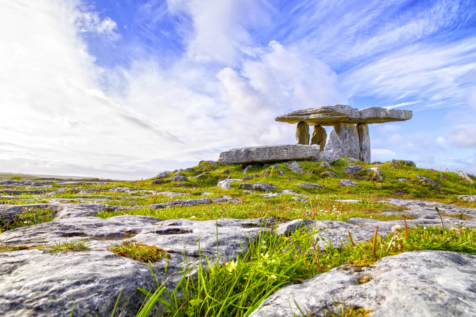 Besuchen Sie die berühmten Cliffs of Moher am besten früh morgens, damit Sie die dramatischen Steilklippen in Ruhe genießen können. Die bis zu 214 Meter hohen Felsen bieten eindrucksvolle Ausblicke – bei klarer Sicht bis zu den Aran Islands und den Bergen von Connemara. In Lisdoonvarna holen Sie sich am Burren Smokehouse ein Picknick-Paket ab - bestehend aus kalt geräuchertem Bio-Lachs, Käse aus der Region und traditionellem irischem Sodabrot (glutenhaltig) mit Butter und einem nicht alkoholischen Getränk. Der Burren ist mit den schönsten Plätzen für ein Picknick gesegnet. Wählen Sie z.B. einen Platz an der Blackhead Küstenstraße nach Fanore, um Ihr Picknick zu genießen. Der Burren – eine der ungewöhnlichsten Landschaften Irlands – fasziniert mit seiner kargen, steinernen Schönheit. Die Region ist geprägt von weitläufigen Kalksteinplatten, die sich wie ein Puzzle über Hügel und Täler legen. Zwischen den Felsen wachsen seltene Pflanzenarten, darunter alpine, mediterrane und arktische Gewächse – ein botanisches Phänomen, das weltweit einzigartig ist. Mitten in dieser einzigartigen Umgebung liegt die Caherconnell Sheepdog Farm. Auf dieser familiengeführten Schaffarm können Besucher die traditionelle Arbeit mit Hütehunden erleben – ein authentischer Einblick in das ländliche Leben des Burren.