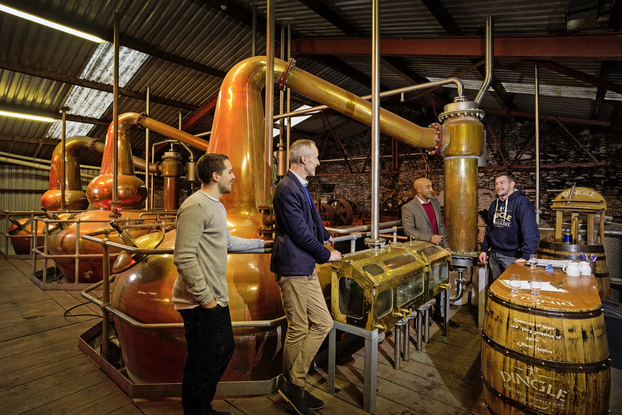 Die Route über den Skellig Ring mit den Kerry Cliffs und Valentia Island (Fährverbindung saisonal, Überfahrt nicht inkl.) offenbart spektakuläre Ausblicke. In Dingle angekommen, lohnt sich ein Spaziergang durch den charmanten Ort – und ein Eis bei Murphy’s sollte nicht fehlen! Die kleine, familiengeführten Manufaktur ist für ihre außergewöhnlichen Eissorten bekannt. Die Zutaten stammen aus der Region: Milch von Kerry-Kühen, Meersalz aus der Dingle Bay und sogar lokaler Gin oder braune irische Brotkrümel finden ihren Weg in die Rezepturen. Wer Lust auf etwas Besonderes hat, könnte Sorten wie „Sea Salt“, „Irish Brown Bread“ oder „Dingle Gin“ probieren – alle handgemacht, ohne künstliche Zusätze. Schauen Sie am Nachmittag doch bei der Dingle Whiskey Distillery vorbei. Lernen Sie aus nächster Nähe die Produktionsprozesse vom Maischen über die Gärung und Destillation bis hin zur Reifung kennen.