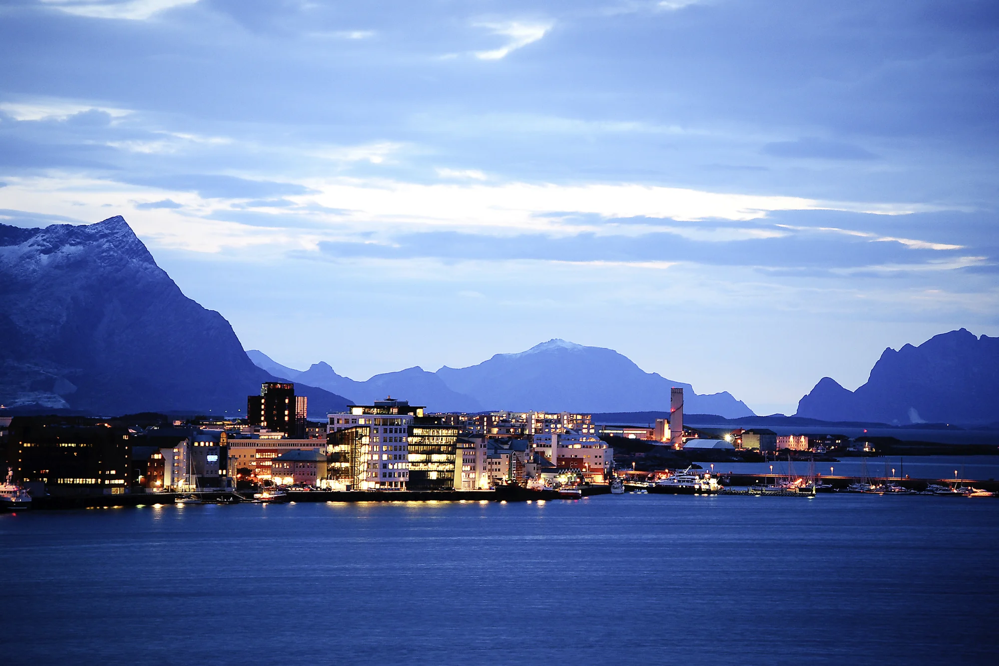 Der Tag beginnt mit einem Stopp in Harstad, gefolgt von einem kurzen Aufenthalt in Finnsnes. Halten Sie unterwegs die Augen offen: Mit etwas Glück erspähen Sie Papageientaucher oder – insbesondere in den Wintermonaten – sogar Wale. In Tromsø, einst Ausgangspunkt großer Polarexpeditionen, haben Sie rund vier Stunden Zeit zur freien Verfügung oder für die Teilnahme an einem optional zubuchbaren Ausflug. Highlight ist die markante Eismeerkathedrale. Am Abend nimmt das Schiff Kurs auf Skjervøy – vorbei an den majestätisch aufragenden Lyngen-Alpen.