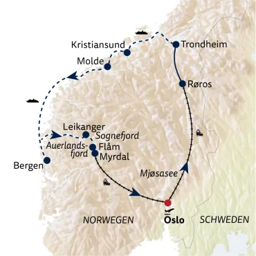 Wolters Rundreisen - Kombinationsreise Fjordwelt, Flåmbahn & Hurtigruten