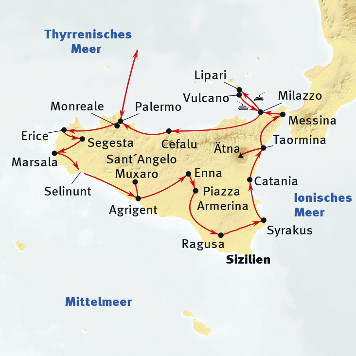 - Intensive, zweiwöchige Rundreise zu den wichtigsten Natur- und Kulturhöhepunkten der Mittelmeerinsel Sizilien
