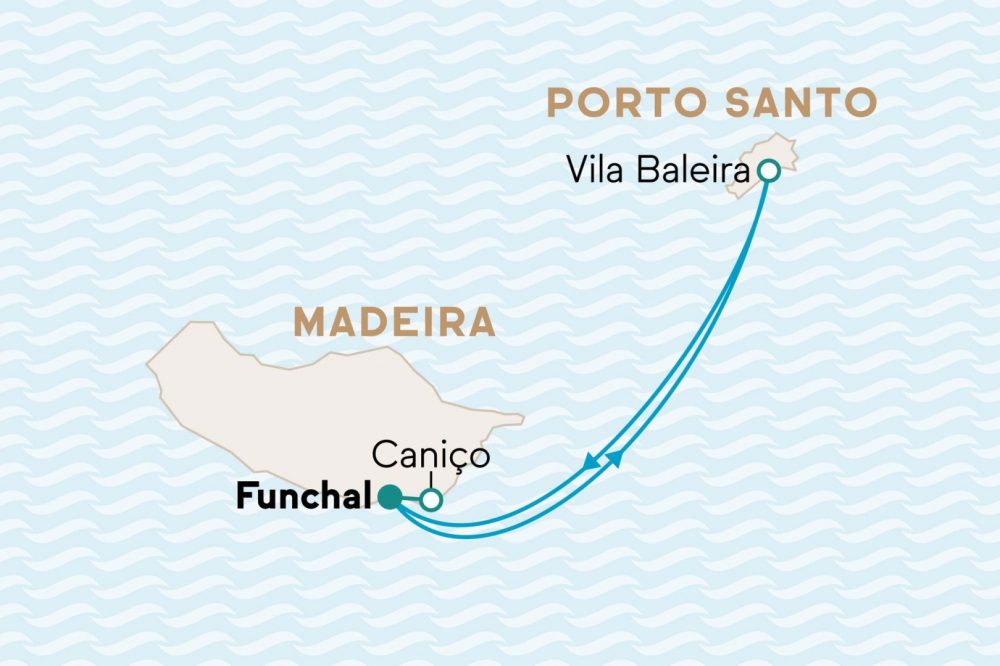Fährpassage Funchal-Porto Santo-Funchal (2. Klasse), inkl. Transfers ab/bis Hafen in Funchal und auf Porto Santo