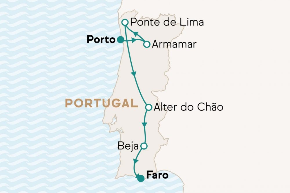 8 Übernachtungen: 2x Vila Galé Douro Vineyards, Armamar; 2x Vila Galé Collection Ponte de Lima Vineyards, Ponte de Lima; 2x Vila Galé Collection Alter Real, Alter do Chão; 2x Vila Galé Collection Monte do Vilar, Beja