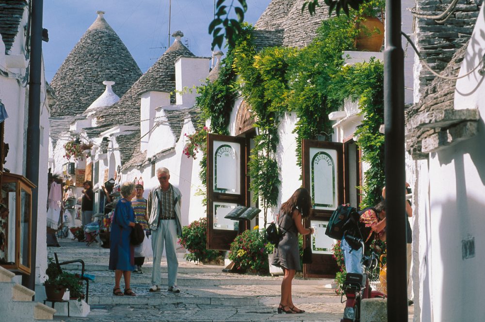 Wir steigen hinab in das atemberaubende Höhlensystem der Grotten von Castellana. In bis zu 60 Metern Tiefe bestaunen wir die beeindruckende Landschaft aus Stalagmiten und Stalaktiten, welche über Jahrtausende durch langsames Tropfen gewachsen sind. Zurück an der Erdoberfläche begegnen wir auf unserem Weg durch die Kalkebene der Murge den ersten Trulli. Diese einzigartigen Rundhäuser sind mörtellos errichtete Bauten mit charakteristischen Kraggewölben. In Alberobello reihen sich über 1.000 der besonderen Bauwerke aneinander und es entsteht ein pittoreskes Bild - zu Recht wurde der Ort von der UNESCO zum Weltkulturerbe erklärt. Nach unserer Fahrt durch das malerische Itriatal machen wir uns einen Eindruck von dem hervoragenden Wein, der in Apulien hergestellt wird. Bei einer Weinprobe, begleitet von einem kleinen lokaltypischen Imbiss, verkosten wir erlesene Tropfen und entdecken einige authentische Spezialitäten. Den Abschluss des Tages bildet ein Besuch in der am Meer gelegenen Stadt Monopoli. Hier bietet sich uns die Möglichkeit, bei einem Spaziergang entlang der Küste die frische Meeresbrise zu genießen. 150 km (F, A)