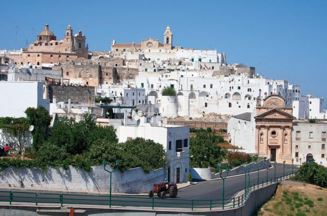 Nach einer kurzen Fahrt durch Olivenhaine erreichen wir das historische Städtchen Martina Franca. Heute ist Markttag - ein buntes Treiben, das wir uns nicht entgehen lassen wollen. Hier spüren wir die lebendige Atmosphäre und das authentische Flair der Region ganz unmittelbar, während uns von allen Seiten frisches Obst und Gemüse angeboten wird. Bei unserem Spaziergang erkunden wir das charmante Stadtbild begegnen gastfreundlichen Anwohnern. Anschließend verkosten wir das exzellente Olivenöl Apuliens und sofort wird der Unterschied zur üblichen Supermarktware deutlich. Nach einer kurzen Weiterfahrt erscheint sie schon von weitem vor uns: die »città bianca«, die weiße Stadt Ostuni, die eindrucksvoll auf einem Hügel thront. Enge, verwinkelte Gassen führen durch den historischen Stadtkern hinauf zur Kathedrale und zur Piazza della Libertà. 90 km (F, A)