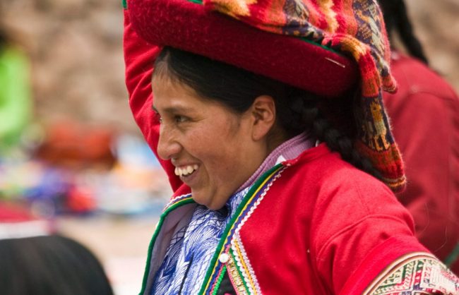 Wir fliegen hinauf in die Anden und fahren von Cuzco weiter ins tiefer gelegene Urubamba-Tal. Auf dem Weg dorthin besuchen wir das Textilzentrum Awanacancha, wo wir Alpakas und Lamas bestaunen können. Dabei lernen wir auch die traditionellen Webtechniken der Einheimischen kennen, die für ihre kunstvollen Textilien natürliche Farben verwenden. (F)