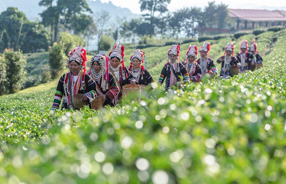 Am Morgen brechen wir auf zur entlegenen Kuab Chua Plantage. Umgeben von unberührter Natur erleben wir die Ursprünge feinster Teekultur. Die Plantage legt großen Wert auf rein biologischen Teeanbau. Gastgeber dieses besonderen Besuchs ist Herr Anantachai, der seine Leidenschaft für nachhaltige Landwirtschaft und regionale Qualität mit uns teilt. Anschließend fahren wir weiter ins berühmte Goldene Dreieck, wo sich die Grenzen von Thailand, Laos und Myanmar begegnen. Hier besuchen wir die weitläufige Choui-Fong-Teeplantage, die zu den bedeutendsten Teeproduzenten in Chiang Rai zählt. Gemeinsam spazieren wir durch die sanft geschwungenen Teefelder und erfahren mehr über Anbau und Verarbeitung.. 80 km (F)