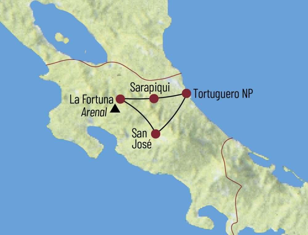 Neben Wanderungen am Fuße des bekannten Vulkans Arenal bekommen Sie hautnahe Einblicke in den Alltag eines Landwirtes auf der Finca Sura und können sogar Ihren eigenen Ananas-Setzling pflanzen. Erleben Sie auf einer Kaffeetour, wie der beliebte Muntermacher heranreift und verarbeitet wird. Lassen Sie sich den Genuss einer frischen Tasse Kaffee nicht entgehen. Für Entspannung sorgt nicht nur der Besuch von Thermalquellen: Die verschlungene Kanallandschaft im Tortuguero-Nationalpark entführt Sie in dichte Vegetation mit einer unglaublichen Artenvielfalt. Lauschen Sie den Urwaldgeräuschen, während Sie in einem Boot den Nationalpark durchschippern – und beobachten Sie von Juli bis September Meeresschildkröten am Strand.