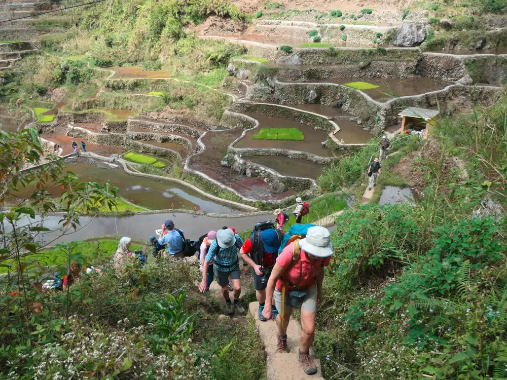 Nach dem Frühstück fahren wir von Banaue mit Jeepneys, den Transportmitteln der Einheimischen, bis Cambulo. Von dort aus wandern wir bis nach Batad. GZ ca. 3 Std. Das Dorf ist bekannt für seine wie ein Amphitheater gestalteten Reisterrassen. Wer möchte setzt die Wanderung bis zum Batad Wasserfall fort, wo wir ein erfrischendes Bad nehmen können. GZ ca. 2 Std. Die Nacht verbringen wir bei Einheimischen. Gasthausübernachtung in Batad. (F, M, A)