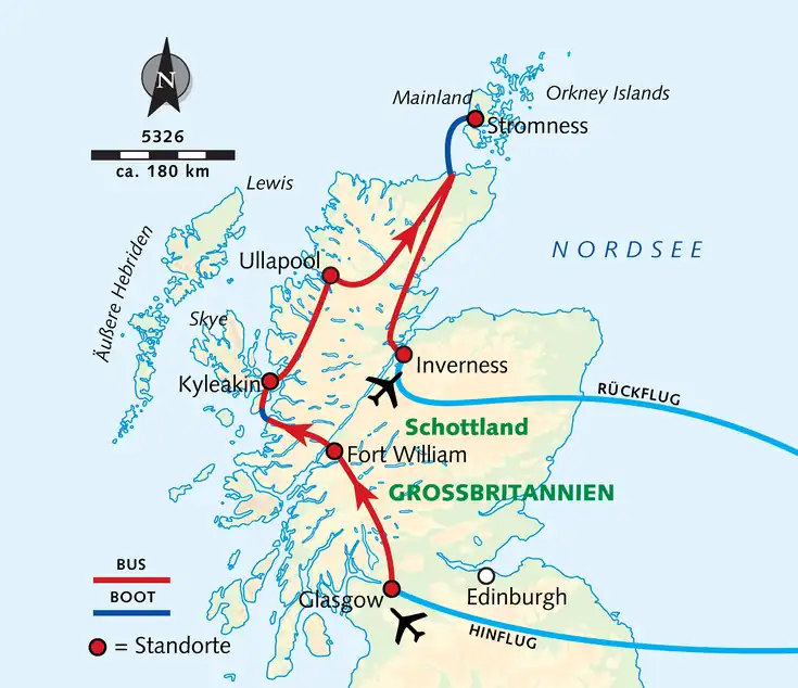 - Fährüberfahrt auf die Isle of Skye und auf die Orkneys und zurück