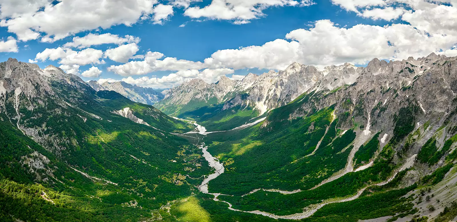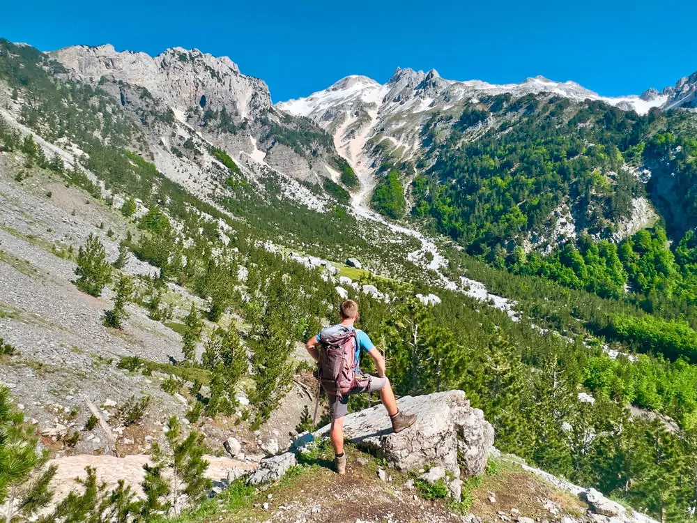 Nach kurzem Transfer türmen sich vor uns die Felszacken des Valbona Nationalparks, denen wir mit jedem Schritt näherkommen. Oben am Valbona-Pass angekommen lohnt es sich, zum Aussichtspunkt aufzusteigen. Links und rechts ragen schroffe Gipfel in den blauen Himmel. Uns zu Füßen liegt das grüne Valbona-Tal – herrlich (GZ: 6 Std., + 750, - 1.125 m)! Abstieg nach Theth (1 Ü).