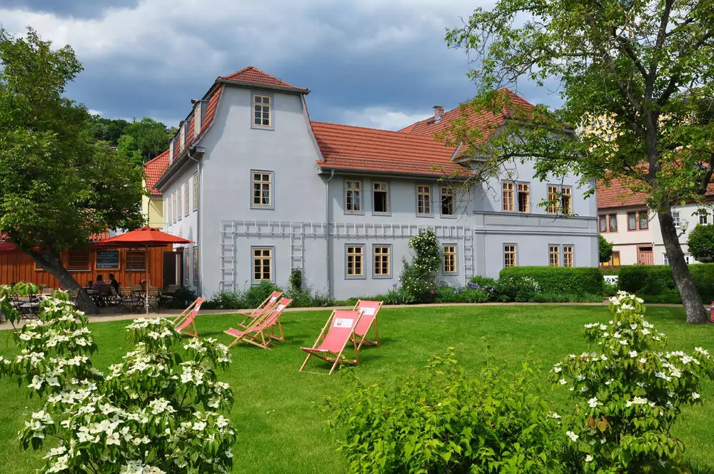 Heute starten wir in Rudolstadt. Ein schicksalhafter Umweg war es, der Schiller auf dem Weg nach Weimar in das beschauliche Städtchen führte. Auf dem Schillerwanderweg nähern wir uns, teilweise an der Saale entlang der Stadt und zur Heidecksburg hinauf. Hier bieten sich nochmal tolle Blicke auf Rudolstadt (GZ: 4 Std., +/- 300 m). Bei einer Führung im Schillerhaus erfahren wir im Anschluss alles über die Liebe und spätere Heirat des mittellosen Dichters.