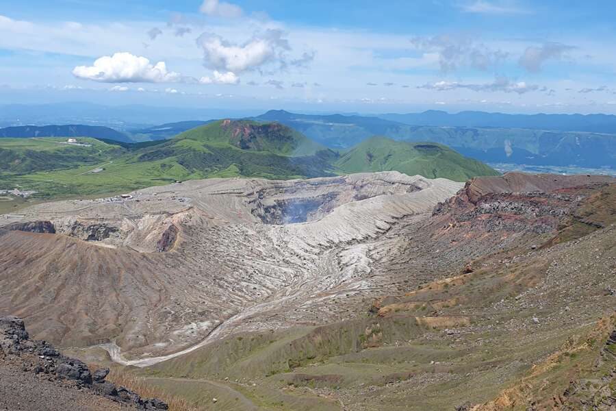 - Im Aso-Kujü-Nationalpark zum Kraterrand des Taka-dake Vulkan wandern