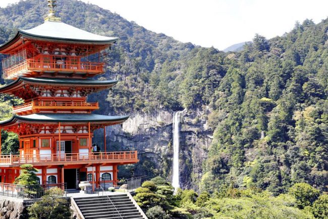 Wir reisen die nächsten Tage mit leichtem Gepäck, unser Hauptgepäck wird schon heute nach Kyoto transportiert. Daher packen wir alles in den Tagesrucksack, was wir für die folgenden drei Nächte benötigen, und steigen in den Schnellzug. Eine Fahrt mit dem Shinkansen ist ein Erlebnis. Er ist nicht nur super schnell und super pünktlich, sondern auch super präzise - er hält zentimetergenau am Bahnsteig. Wir gleiten mit dem Zug in Windeseile entlang der Küste Honshus bis wir am Nachmittag die Stadt Osaka erreichen. Mit dem Express-Zug geht es ab hier bis Kii-Katsuura und von dort bringt uns der öffentliche Bus bis zum kleinen Bergort Nachi, wo wir unsere Unterkunft beziehen. Hier beginnt der Kumano-Hongu-Taisha-Pilgerweg und auch wir wandern eine kleine Etappe den Daimonzaka-Berg hinauf. Hohe Zedernbäume säumen den Weg zum shintoistischen Schrein, nur wenige Schritte weiter stürzt der Nachi-Wasserfall in die Tiefe. Mit diesen scheinbar mystischen Eindrücken lassen wir den Tag im Ryokan ausklingen. Wie wäre es noch mit einem Besuch des Onsen? (F, A)