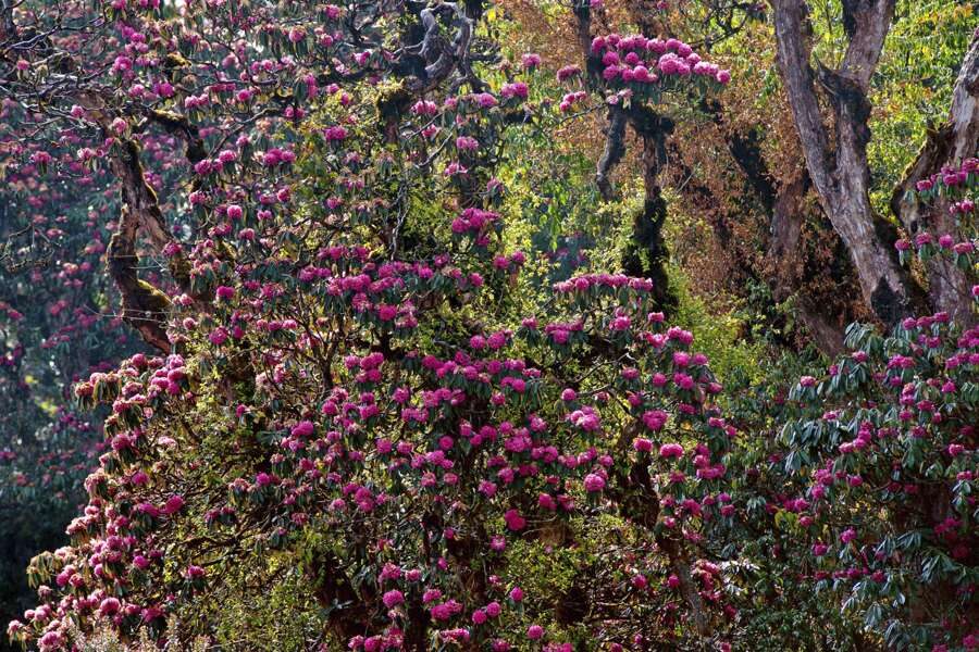 Im Tal des Dudh Khola wandern wir südwärts hinab und verlieren beachtlich an Höhe. Wir wechseln von der Ost- auf die Westseite hinüber. Blicken wir nach oben, haben wir gigantische Einblicke in die Westabstürze des Manaslu. Prächtige Rhododendronwälder – im Frühjahr ein Blütenmeer – säumen den Weg talauswärts. Wir erreichen das Gurungdorf Gowa (2.515 m). (F, A)
