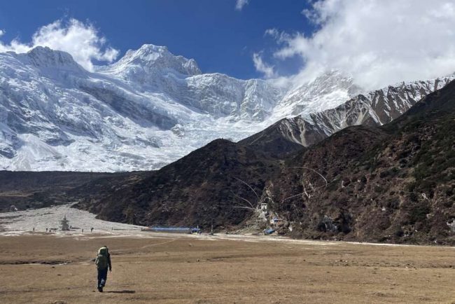 Der heutige Tag steht als Ruhetag zur Verfügung. Wir können uns Zeit nehmen, um durch das Dorf zu spazieren und dem örtlichen Kloster einen Besuch abzustatten. Dabei lässt sich stets die Aussicht auf die umliegenden Berge genießen. Wer heute aktiv sein möchte, wandert entweder gemütlich auf einem Rundweg zum auf 3.600 m gelegenen Birendra-See (ca. 5 km, ↑↓ 220 m, ca. 1 - 2 Std.) oder nimmt an einer anspruchsvollen Wanderung hinauf zum Manaslu Basecamp teil (ca. 13,5 km, ↑↓ 1300 m, ca. 8 - 9 Std.). Über einen felsigen und teils steilen Pfad wird das Basislager auf ca. 4.850 m erreicht. Bei gutem Wetter bieten sich bereits unterwegs herrliche Ausblicke auf die uns umgebende Bergwelt und zahlreichen Gipfel. (F, A)