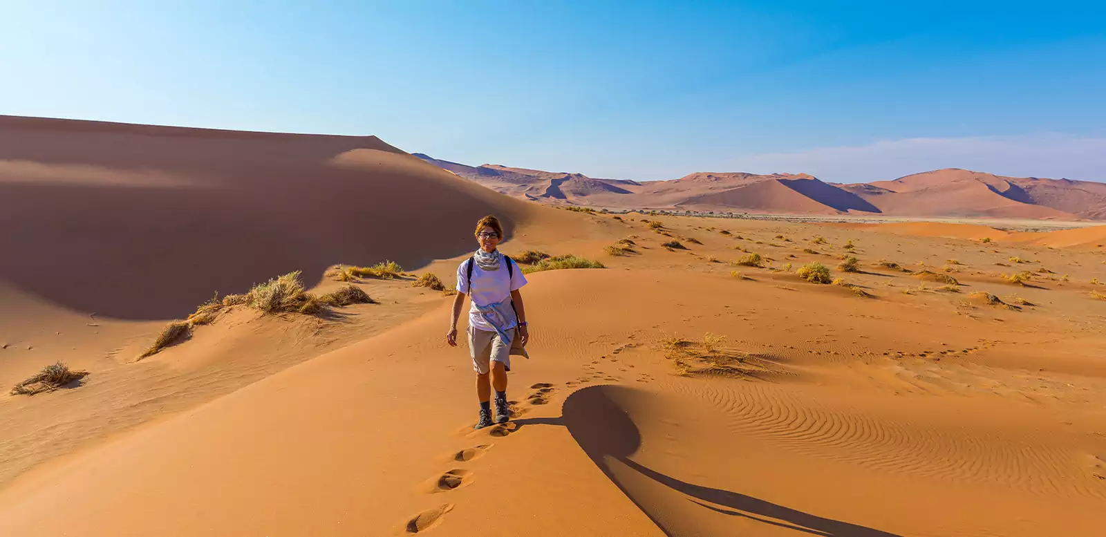 Zu Fuß geht es zurück. GZ ca. 2 Std. Weiterfahrt zur nächsten Lodge. Am nächsten Tag führt uns ein Tagesausflug ins Sossusvlei. Die Dünen gehören mit einer Höhe von bis zu 300 Metern zu den höchsten der Welt. GZ ca. 3 Std. Anschließend besuchen wir das Deadvei und den Sesriem-Canyon mit seinen beeindruckenden Felsformationen. Das Sossuvlei, das Deadvlei und der Canyon liegen im größten Naturschutzgebiet Afrikas, dem Namib-Naukluft-Park. 2 Lodgeübernachtungen. 70 km und 220 km. (2 x F, 2 x A)