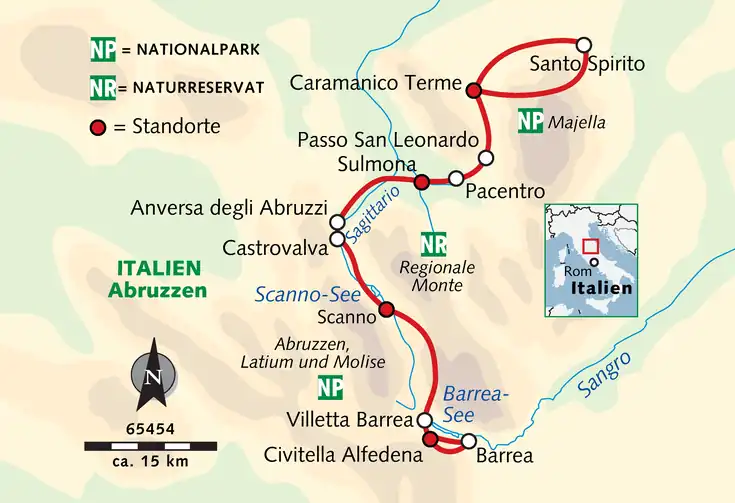 Flug nach Rom und Transfer (ca. 2 1/2 Std.) ins wunderschöne Caramanico Terme (3 Ü), im Herzen des Majella-Nationalparks gelegen.