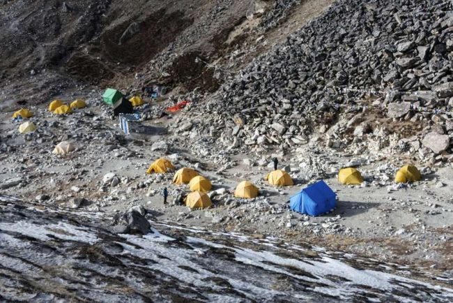 In einer leichten Halbtagesetappe wandern wir in der Moränenlandschaft nach Osten. Auf dem Weg zum Island Peak-Basislager, auch Pareshaya Gyab genannt, kommen wir an einem weiteren ausgetrockneten See vorbei. Urplötzlich erhebt sich die gewaltige Lhotse-Wand vor uns – so nah waren wir ihr bisher noch nie. Unser Zeltlager liegt in rund 5.100 m Höhe in der Nähe des riesigen Imja Lhotse Shar-Gletschers. Die Teilnehmer, die auf die Besteigung des Island Peak verzichten, bleiben mit der deutschsprachigen Reiseleitung in Chukhung und verbringen dort insgesamt drei Nächte. Wer möchte, kann mit den Gipfelaspiranten bis zum Basislager gehen und nach der gemeinsamen Mittagsrast wieder zurück nach Chukhung absteigen. Bitte beachten Sie: Unsere Agentur muss spätestens 4 Wochen vor Reisebeginn ein Permit beantragen. Eine Anmeldung für die Besteigung ist deshalb mit Ihrer Buchung zwingend erforderlich. (F, A)