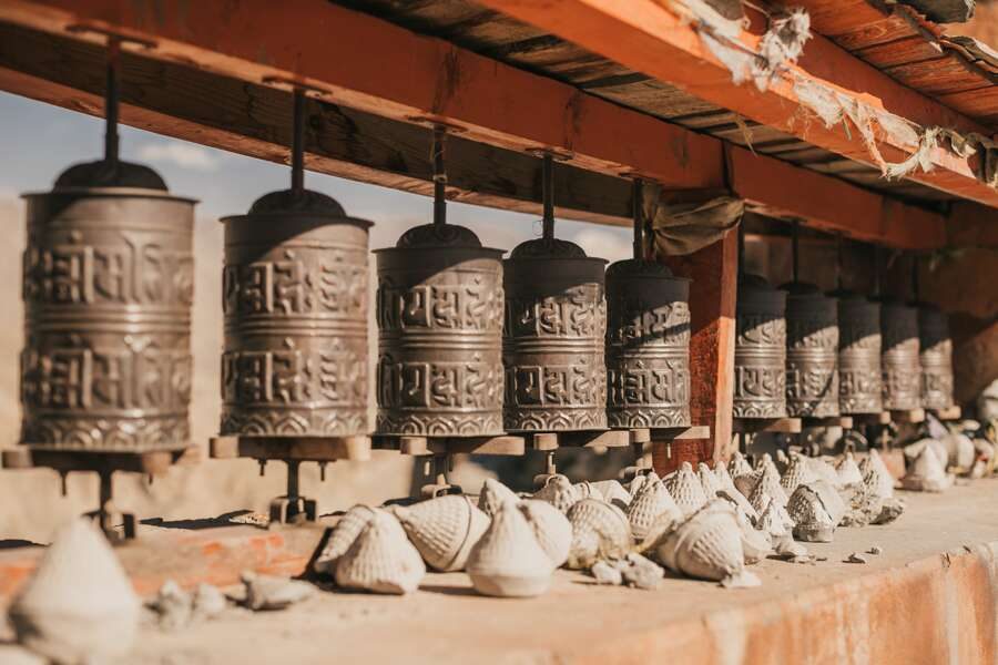 Der heutige Tag dient neben dem Besuch des Pilgerorts Muktinath (3.680 m) unserer Akklimatisierung an die Höhe. Durch die tibetischen Dörfer Dzong und Chhengar sowie teils auf einer wenig frequentierten Piste gelangen wir hinauf nach Muktinath. Die Heiligtümer des Ortes sind für Buddhisten ebenso bedeutend wie für Hindus. Die Hindus verehren die heiligen Quellen des Flusses Krishna Gandaki, die um einen Tempelhof aus 108 bronzenen Wasserspeiern heraustreten, während die Buddhisten im danebenliegenden Gompa-Raum das ununterbrochen brennende heilige Feuer verehren, das von einer Erdgasquelle gespeist wird. Wir essen hier oben zu Mittag und fahren dann mit Jeeps wieder hinunter nach Kagbeni. Der Rest des Tages steht zum Ausruhen oder Erkunden des Dorfes zur Verfügung. (F, A)