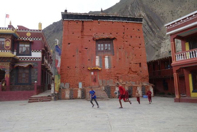 Von Pokhara fahren wir hinein und durch das Kali Gandaki-Tal, zwischen Dhaulagiri- und Annapurna-Massiv gelegen nach Marpha (2.650 m) und quartieren uns in einer Lodge ein. Das Dorf ist bekannt für seine Apfelplantagen. Den Nachmittag können wir für einen Abstecher zu den hoch in einem Seitental gelegenen Plantagen von Old Marpha nutzen oder einfach nur das schmucke, lang gestreckte Dorf erkunden. (F, A)