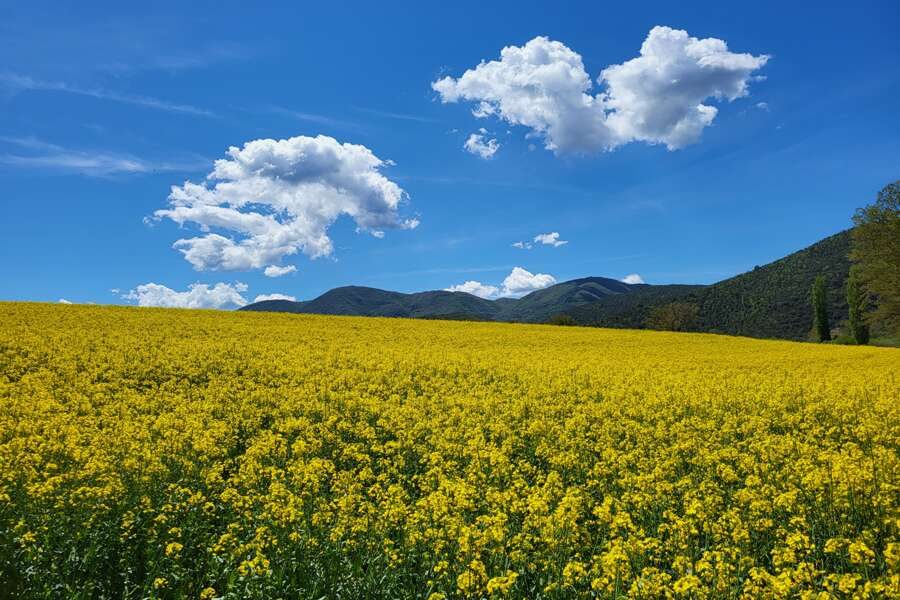 Unsere heutige Etappe führt uns zunächst durch schattigen Wald. Je höher wir kommen desto lichter werden die Bäume und wir werden mit tollen Ausblicken belohnt. Wir blicken immer wieder auf das Heilige Tal und die Ausläufer der Apenninen. Weiter geht es durch die Gebirgskette der Sabiner Berge zu den Almwiesen "Prati di Cottanello" - ein idealer Platz für unser Mittagspicknick! Lust auf einen Cappucchino im Dorf Cottanello? Am Nachmittag steigen wir in ein Flussbett hinab und wandern auf einem alten Muliweg zu unserem heutigen Ziel - dem Agriturismo Le Colline am Rande des Dorfes Vacone. (F, A)